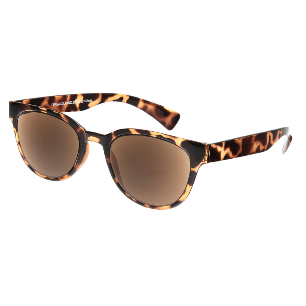 A modern RETRO design “Sun” reader for the fashion conscious Women. “Tortoiseshell” pattern frame with black temples. UV400 lens. The magnifications for PENSACOLA range from 1.0 to 3.0